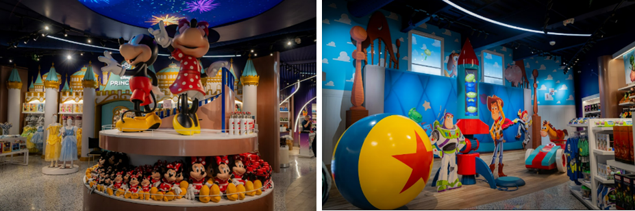 Inspirada en los momentos más icónicos de las historias de Disney, Pixar, Marvel y Star Wars, esta tienda está diseñada como un espacio inmersivo para público de todas las edades en donde figuras de personajes favoritos como Mickey Mouse, Elsa o Spider-Man inspiran a los visitantes a tomarse fotos y crear recuerdos memorables.