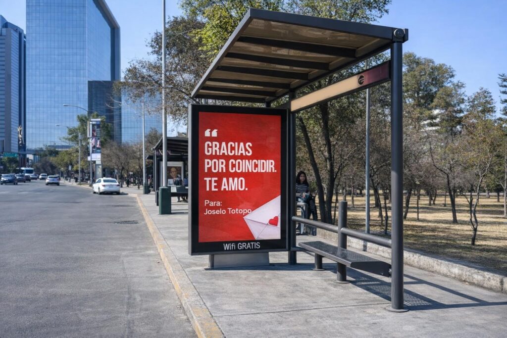 Durante el fin de semana de San Valentín, los parabuses digitales de Grupo IMU dejaron de ser solo parte del paisaje urbano para convertirse en vitrinas de emociones compartidas.