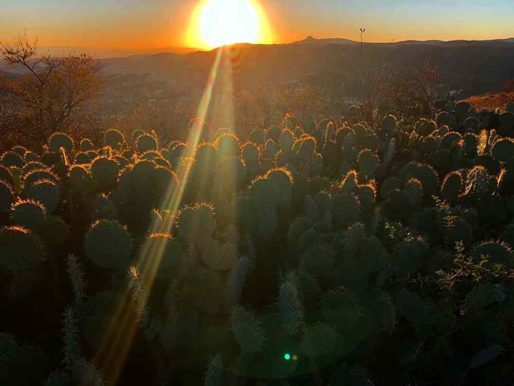 En la zona rural, la paleta del ocaso se desborda: los campos de maíz y nopal se tiñen de un dorado que canta, los rojos abrazan las lomas como brasas vivas, y los azules, fríos y antiguos, se derraman sobre los senderos donde el viento murmura leyendas. Aquí, la ciudad y su campiña se funden en un lienzo efímero, donde cada atardecer es un verso que Guanajuato escribe con luz y sombra.