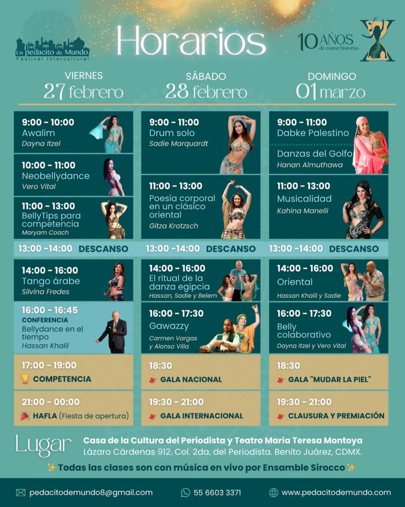 Un Pedacito de Mundo celebra su décimo aniversario en el Teatro María Tereza Montoya, del 27 de febrero al 1 de marzo; por segundo año, el Centro Nacional de las Artes (CENART) albergará actividades de Un Pedacito de Mundo del 3 al 5 de marzo, consolidándose como el epicentro de la profesionalización y el arte de Medio Oriente en Iberoamérica.Periodistas Unidos. Ciudad de México a 23 de febrero de 2026.- En el corazón de la capital mexicana, la danza del vientre se prepara para vivir un evento fuera de serie. El festival intercultural