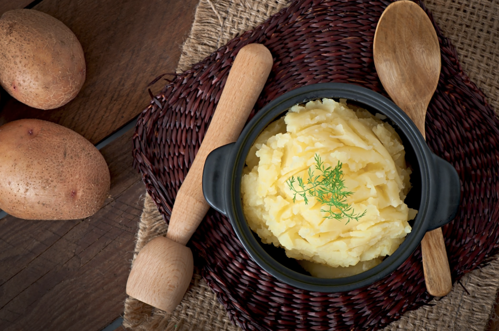 Hierve las papas en agua con sal durante aproximadamente 15 minutos o hasta que estén suaves. Una vez cocidas, escurre y machalas hasta obtener un puré uniforme. Incorpora Danone Griego junto con la leche, mezclando hasta lograr una textura homogénea. Si la mezcla lo requiere, añade un poco más de leche. Finalmente, sazona con sal, pimienta y un toque de nuez moscada.
