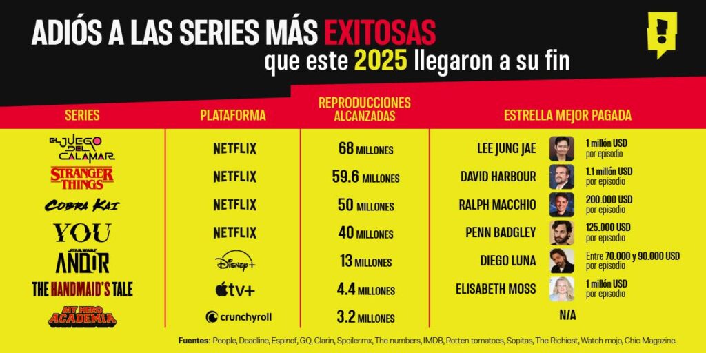 Periodistas Unidos. Ciudad de México a 31 de diciembre de 2025.-Este 2025 algunas de las series más icónicas del streaming llegaron a su fin con un éxito rotundo. Títulos como Cobra Kai, Stranger Things y El juego del Calamar que a lo largo de todas sus temporadas se ganaron el corazón de críticos y fans a través de sus emocionantes historias y entrañables personajes.