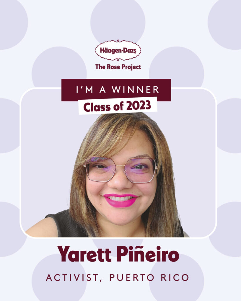 La lista de ganadoras de este primer año también incluye a Yarett Piñeiro, de Puerto Rico, junto a Eunice Maia, de Portugal, y Sarah Kandolo, de Sudáfrica. Para más información sobre las cinco ganadoras y sus increíbles historias, se puede ingresar al sitio web https://iwd.haagen-dazs.global/