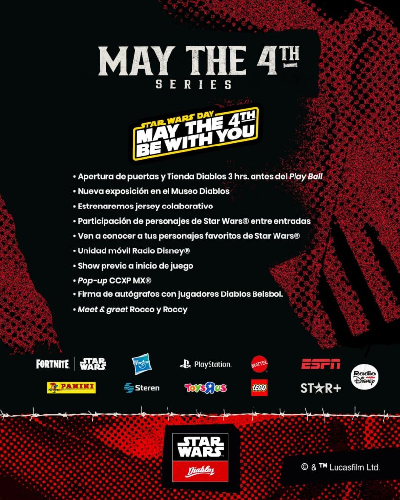 Periodistas Unidos. Ciudad de México a 2 de mayo de 2024.- The Walt Disney Company México y los Diablos Rojos del México lanzarán una colección de ropa deportiva que combina el legado de Star Wars, una de las franquicias más relevantes dentro de la cultura pop, con uno de los equipos más importantes de la Liga Mexicana de béisbol, los Diablos Rojos del México.