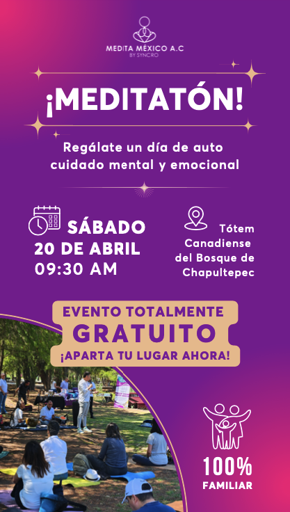 Periodistas Unidos. Ciudad de México a 17 de abril de 2024.- El Meditatón es un evento creado por la Fundación Medita México A.C, que a lo largo del año realiza diferentes actividades y eventos enfocados a llevar los benéficos de la meditación y de una vida saludable a la sociedad. El sábado 20 de abril se llevará a cabo la tercera edición del ya conocido por muchos “Meditatón” la cede este 2024 será en la “Primera Sección del Bosque de Chapultepec” (entrando por la puerta de los leones, en Av. Juventud Heroica, alcaldía Miguel Hidalgo).
