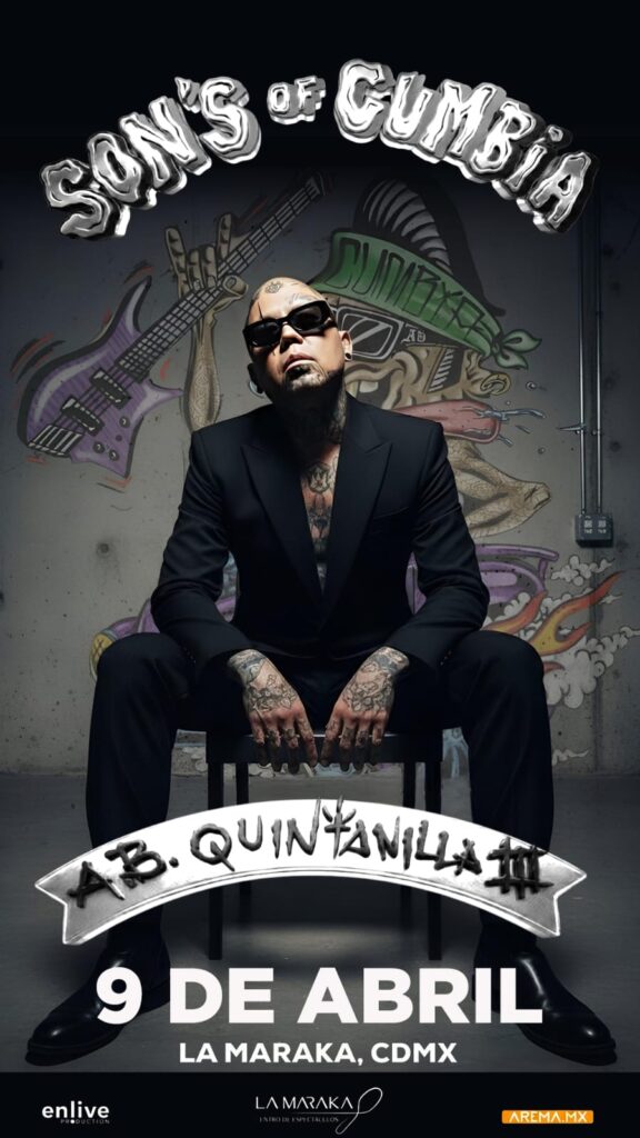 Periodistas Unidos. Ciudad de México. 08 de marzo de 2026.- El arquitecto sonoro detrás de los más grandes éxitos de la cumbia-pop, A.B. Quintanilla III, se presentará el próximo jueves 9 de abril de 2026 en el Centro de Espectáculos La Maraka. En esta ocasión, el músico y productor llega con su formato Son’s of Cumbia, una propuesta que fusiona su vasta herencia musical con una energía renovada para conectar con las nuevas generaciones. Los boletos ya están disponibles a través del sistema Arema.mx y en las taquillas del recinto a partir de las 21:00 horas.