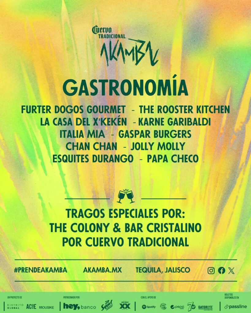 Pero además de la música increíble que podrás disfrutar en el Akamba, este esperado festival contará con una selección gastronómica para todos los gustos.