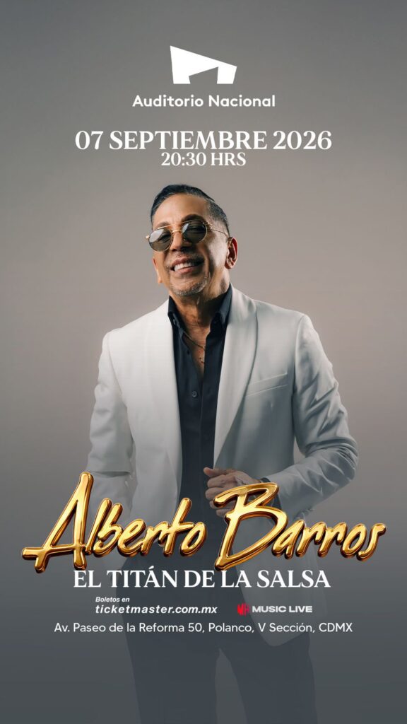Periodistas Unidos. Ciudad de México. 14 de marzo de 2026.- La Ciudad de México se prepara para recibir al «Titán de la Salsa», el maestro Alberto Barros, quien se presentará el próximo lunes 7 de septiembre a las 20:30 horas en el Auditorio Nacional. Este concierto, producido por Music Live, promete ser una de las celebraciones tropicales más importantes del año, reuniendo el virtuosismo de los metales y el ritmo contagioso que ha consolidado al músico colombiano como una figura fundamental en la evolución de la salsa moderna.