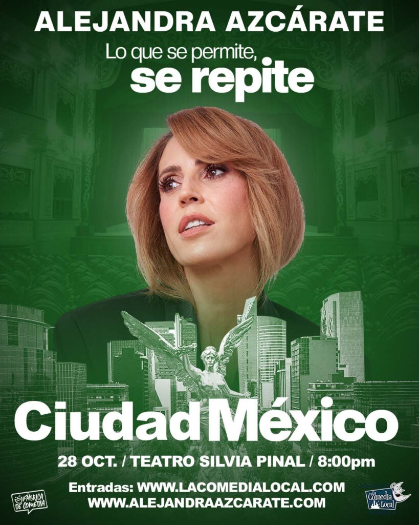 Periodistas Unidos. Ciudad de México. 28 de septiembre de 2025.-Alejandra Azcárate vuelve a la capital mexicana con su monólogo Lo que se Permite se Repite, un espectáculo que combina humor, ironía y reflexión. La cita es el 28 de octubre a las 20:00 horas en el Teatro Silvia Pinal (C. Versalles 27, Juárez, Cuauhtémoc), dentro de una gira internacional de 17 presentaciones en Europa y Latinoamérica entre septiembre y noviembre. Tras agotar localidades en 2024, la carismática y controversial comediante colombiana