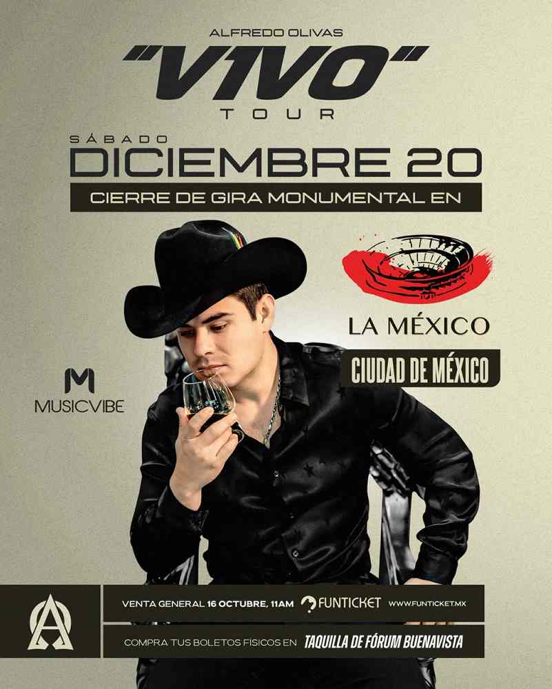 Periodistas Unidos. Ciudad de México. 16 de octubre de 2025.- La historia del regional mexicano vivirá una noche inolvidable el sábado 20 de diciembre, cuando la Monumental Plaza México se transforme en un templo sonoro para Alfredo Olivas. El sonorense, con su acordeón inseparable y una producción monumental de 360 grados por MusicVibe, cerrará su aclamado “Vivo” Tour, que ha recorrido el país con llenos totales y rituales de emoción.