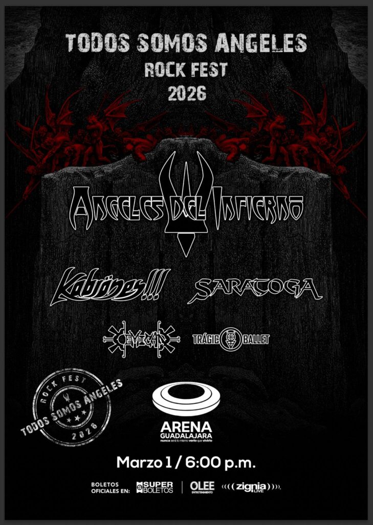 Periodistas Unidos. Ciudad de México, México. 06 de febrero de 2026.- Con un concepto que une fraternidad, memoria y potencia sonora, el Todos Somos Ángeles Rock Fest 2026 se prepara para recorrer tres de las arenas más importantes de México. La gira, encabezada por la leyenda española Ángeles del Infierno, iniciará el 15 de febrero en la Arena CDMX, continuará el domingo 22 de febrero en la Arena Monterrey y concluirá el domingo 1 de marzo en la Arena Guadalajara.