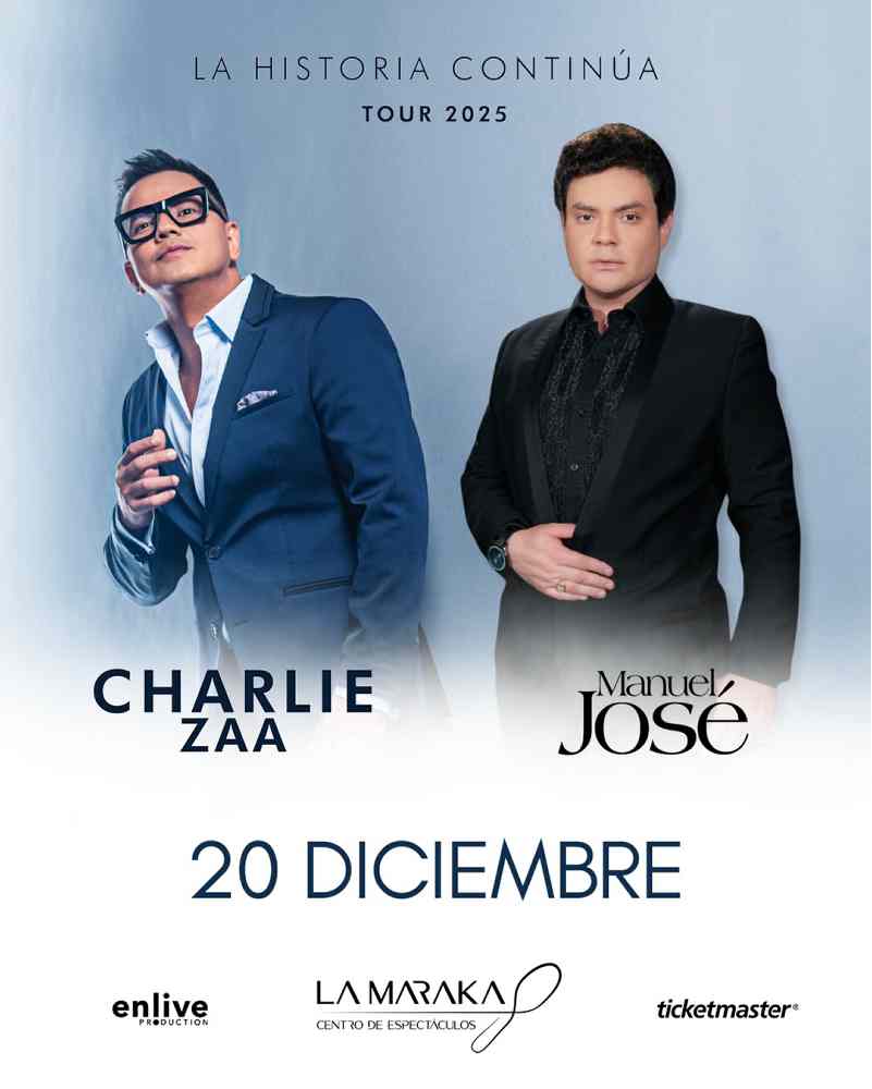 Charlie Zaa, ídolo del bolero pop, llega con su gira “La Historia Continúa Tour 2025”, presentando su nuevo álbum La Historia Continúa, que superó los dos millones de reproducciones en su primera semana. Su voz, suave y profunda, reavivará clásicos y nuevas composiciones que conectan generaciones, consolidando su lugar como referente del género. Por su parte, Manuel José, heredero del legado romántico, regresa a México con un repertorio que rinde homenaje al bolero, el tango y la balada, evocando la sensibilidad de José José con un estilo propio que celebra la tradición sin anclarse en la nostalgia.