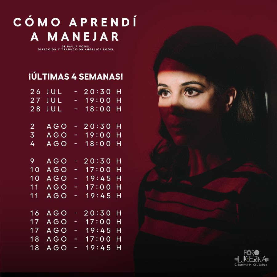 Es la sexta obra de la dramaturga estadounidense Paula Vogel, texto que le otorgó el Premio Pulitzer en el año de 1998. How I learned to drive, su título en inglés, es un texto que impactó desde sus primeros montajes en el Vineyard Theatre en Nueva York y que ahora, casi 30 años después, aterriza en escenarios mexicanos para mostrar la atemorizante atemporalidad y universalidad de sus problemáticas.