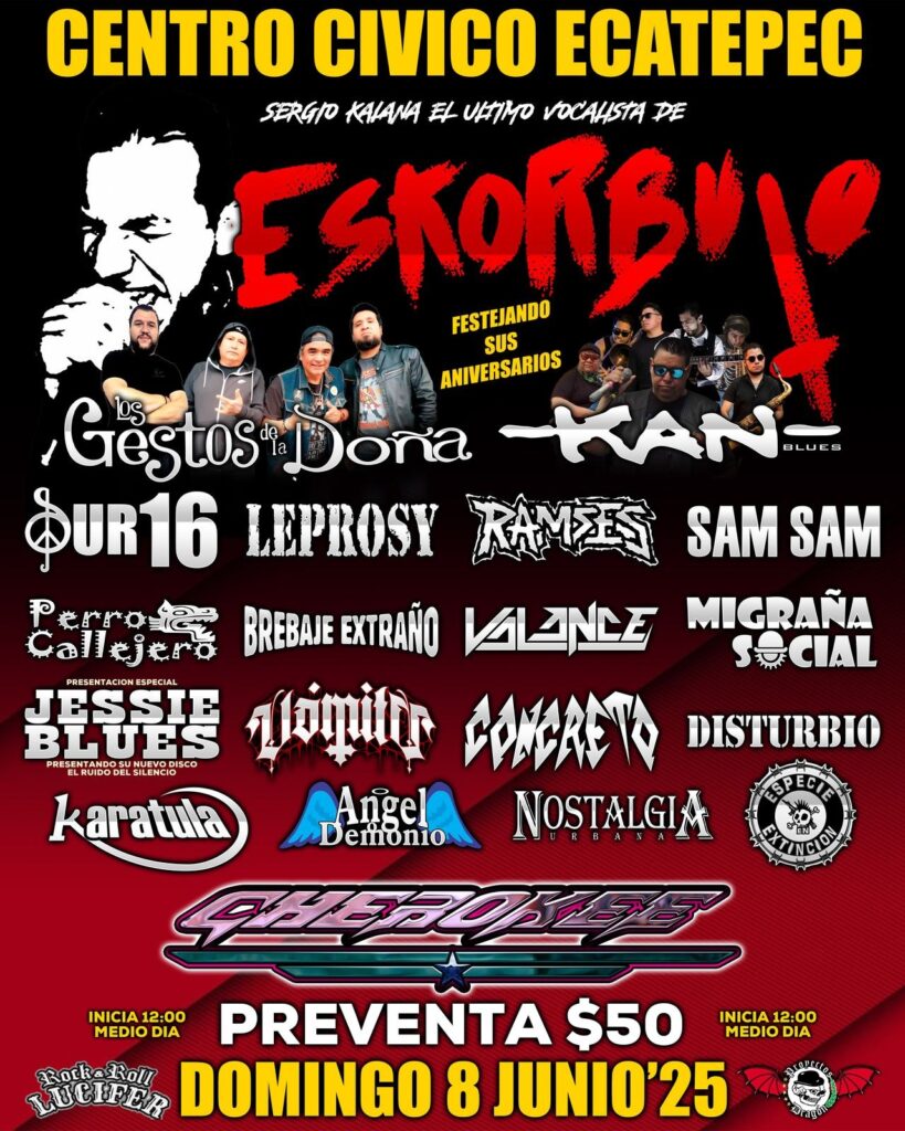 El ambiente sonoro estará a cargo de Sonido Cherokee, una propuesta sonora que acompaña habitualmente los encuentros del barrio, que ayuda a cerrar la brecha entre la resistencia cultural y la fiesta popular. Este evento no es solo un concierto: es un acto simbólico de resistencia, memoria e identidad. El homenaje a Eskorbuto en un municipio como Ecatepec, cargado de historia obrera y juventud combativa, se convierte en un momento profundamente significativo para los seguidores del punk, el rock y el metal en México, quienes durante décadas han escuchado a la banda vasca como una guía espiritual frente a la desesperanza, la represión y la pobreza.