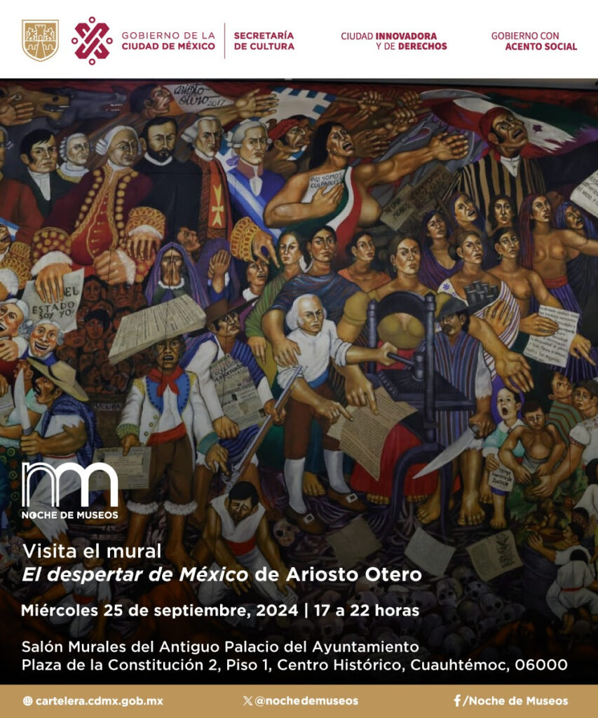 “El Despertar de México” podrá visitarse el miércoles 25 de septiembre, en un horario especial de 17:00 a 22:00 horas, en el marco de la Noche de Museos que organiza la Secretaría de Cultura de la Ciudad de México; posteriormente, se informarán más fechas y horarios. La obra se ubica en el Salón Murales del Antiguo Palacio del Ayuntamiento, en Plaza de la Constitución 2, colonia Centro, Alcaldía Cuauhtémoc.