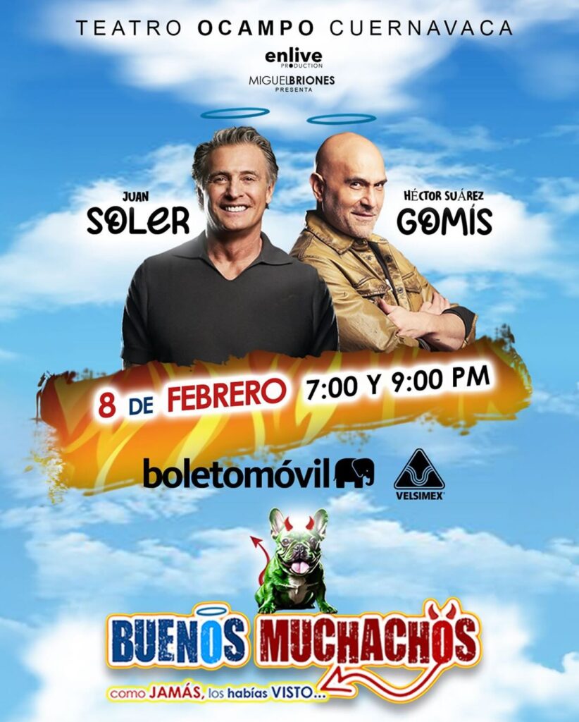 Periodistas Unidos. Ciudad de México. 20 de enero de 2025.-https://lc.cx/8gWLAn La obra de teatro «Buenos Muchachos», escrita, dirigida y protagonizada por Héctor Suárez Gomís, en colaboración con Juan Soler, se presentará en el Teatro Ocampo de Cuernavaca, Morelos, el sábado 8 de febrero, con dos funciones programadas a las 19:00 y 21:00 horas. Los boletos están disponibles para su adquisición a través de la plataforma Boletomóvil en el link