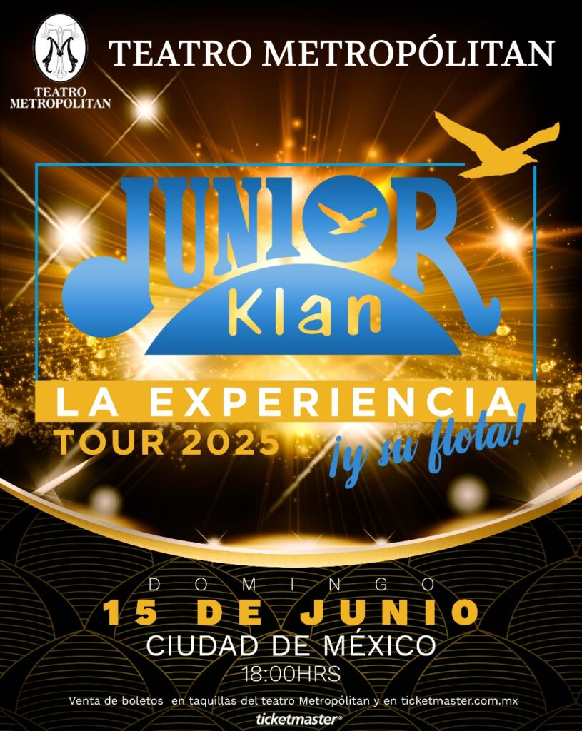 Periodistas Unidos. Ciudad de México. 24 de marzo de 2025.-Tour 2025, que ha llevado su música a diversos rincones de México y el extranjero, consolidándolos como uno de los grupos más queridos y respetados de la cumbia contemporánea. El domingo 15 de junio de 2025, a las seis de la tarde, el Teatro Metropolitan de la Ciudad de México será el escenario que albergará uno de los eventos más esperados del año en el mundo de la cumbia. Junior Klan, una de las agrupaciones más representativas del género, llegará con todo su arsenal de éxitos y una serie de invitados especiales que prometen hacer de esta noche una experiencia inolvidable. Este concierto se enmarca dentro de su exitoso