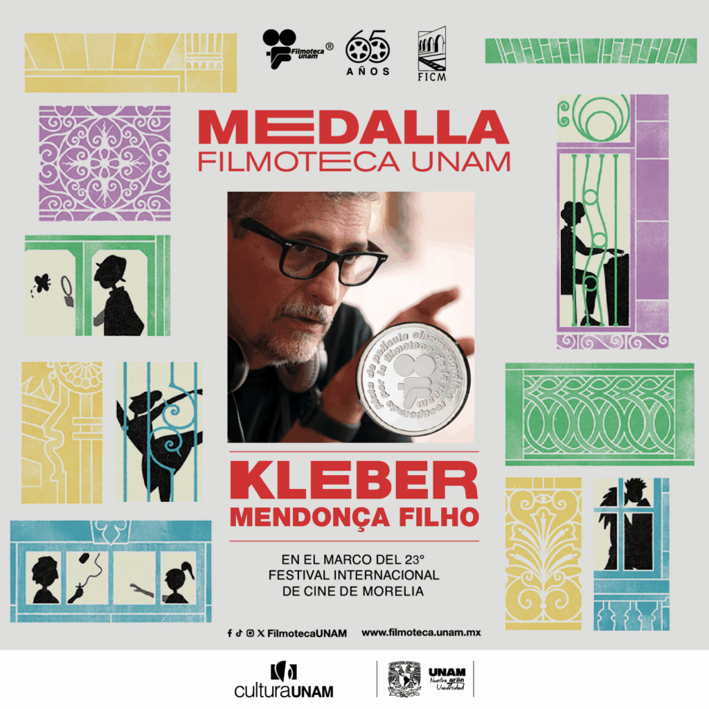 Periodistas Unidos. Ciudad de México. 05 de octubre de 2025.- El aclamado y multipremiado director brasileño Kleber Mendonça Filho recibirá la Medalla Filmoteca UNAM en el marco del 23er Festival Internacional de Cine de Morelia (FICM), por sus invaluables contribuciones a la cinematografía universal. La entrega de la Medalla se realizará el viernes 10 de octubre, durante la conferencia de prensa que ofrecerá el director.