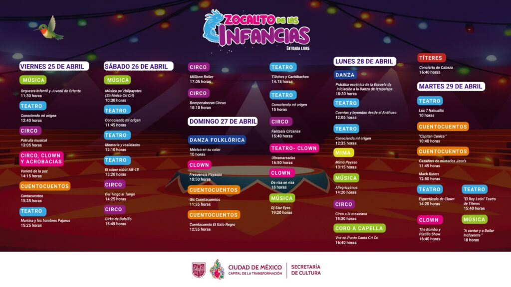 La titular de la Secretaría de Bienestar e Igualdad Social (Sebien), Araceli Damián González, informó que se espera una afluencia total de 500 mil niñas, niños y sus acompañantes al Zocalito de las Infancias, que estará abierto del 25 al 30 de abril en la Plaza de la Constitución.