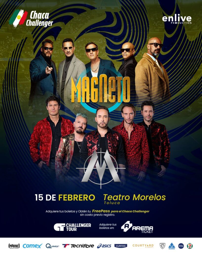 Periodistas Unidos. Ciudad de México. 02 de febrero de 2026.- El próximo sábado 15 de febrero, la ciudad de Toluca, Estado de México, será escenario de un acontecimiento que promete despertar la memoria emocional de toda una generación. Dos de las boybands más emblemáticas del pop mexicano de los años noventa, Magneto y Mercurio, unirán sus trayectorias sobre el escenario del Teatro Morelos en un concierto especial que forma parte del programa de actividades del Chaca Challenger, el torneo internacional de tenis que tendrá lugar en la capital mexiquense. La compra del boleto para este concierto dará derecho al portador a ingresar sin costo al torneo Chaca Challenger, previo registro. Boletos a la venta en el Sistema Arema Ticket.