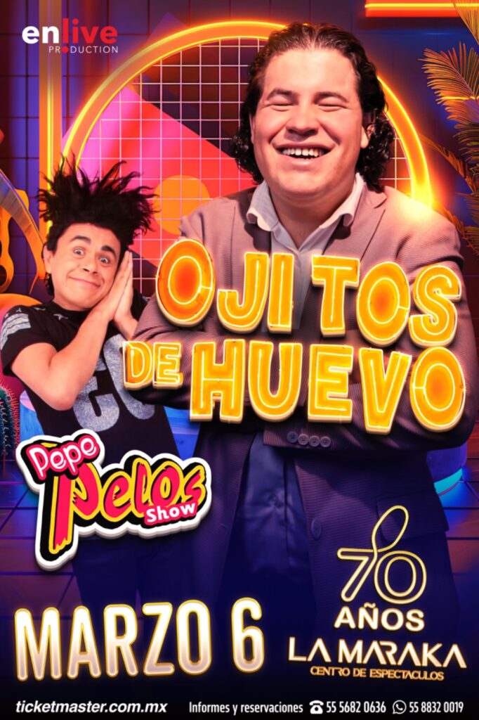 Si se es fan de la comedia, del teatro o simplemente se busca una noche llena de risas y buen humor, este es el evento perfecto. Ojitos de Huevo y Pepe Pelos te esperan en la Maraka para ofrecer un espectáculo que quedará grabado en tu memoria. El show está programado para comenzar a las 21:00 horas del jueves 6 de marzo de 2025. Los boletos ya están a la venta a través del sistema Ticketmaster y en las taquillas del inmueble.