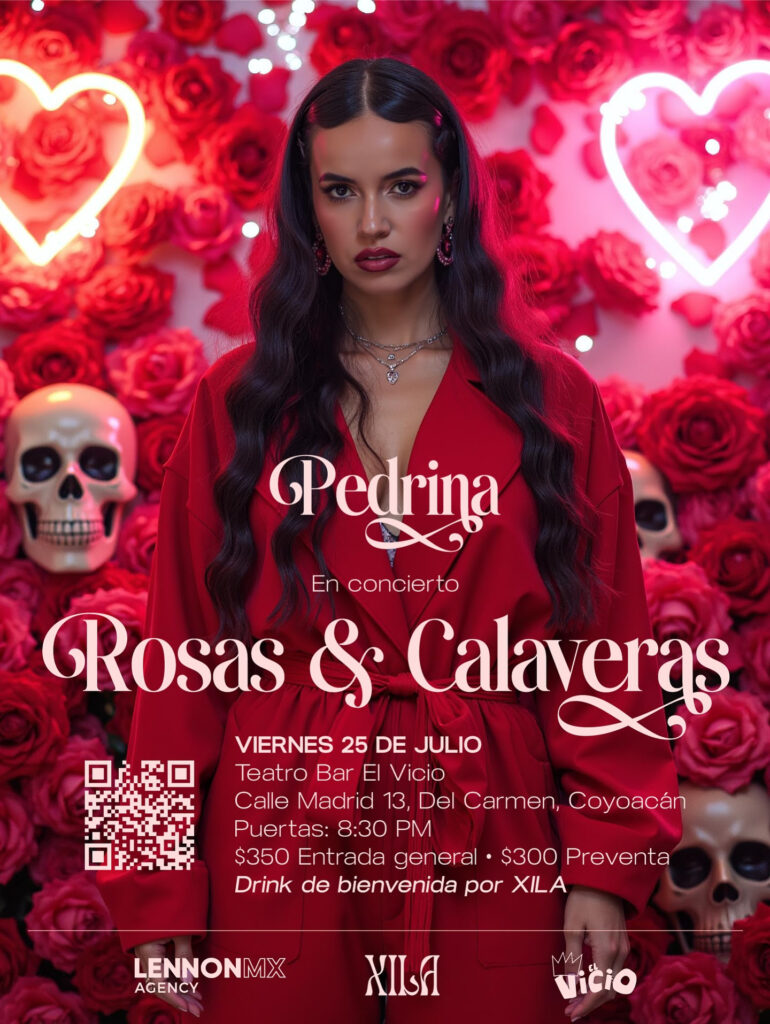 Para celebrar esta nueva etapa, Pedrina regresará a los escenarios mexicanos con un concierto especial el viernes 25 de julio en el emblemático Foro El Vicio, ubicado en el corazón de Coyoacán, Ciudad de México. La presentación, programada a las 9:00 PM, promete un recorrido emocional por su nuevo repertorio, incluyendo “Te quiero más”, “Cartas” y “Florecer Contigo”, junto a clásicos como “Enamorada” y “Cariñito”, que han conquistado al público iberoamericano. Con la atmósfera bohemia y cercana de Foro El Vicio, el concierto será una experiencia única para los fans.