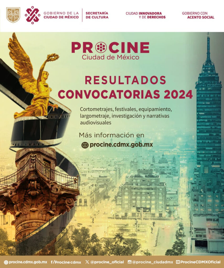 Periodistas Unidos. Ciudad de México. 11 de junio de 2024.- La Secretaría de Cultura de la Ciudad de México, a través del Fideicomiso para la Promoción y Desarrollo del Cine Mexicano en la Ciudad de México (PROCINECDMX), anuncia los resultados de las nueve convocatorias correspondientes al 2024, a través de las cuales, se apoya y fomenta la creación, desarrollo, investigación, exhibición y equipamiento del cine mexicano en la capital del país. El pasado 8 de enero fueron publicadas cada una de estas, con estímulos que van desde los 50 mil hasta 750 mil pesos.