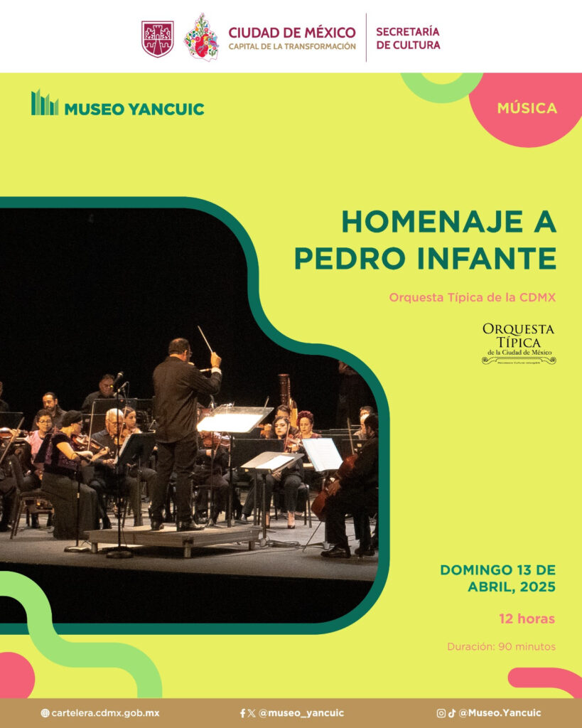 La Orquesta Típica de la Ciudad de México, bajo la dirección del maestro Alberto Torres Xolocotzi, interpretará diversas canciones que hicieron famoso al actor e intérprete Pedro Infante para conmemorar su fallecimiento