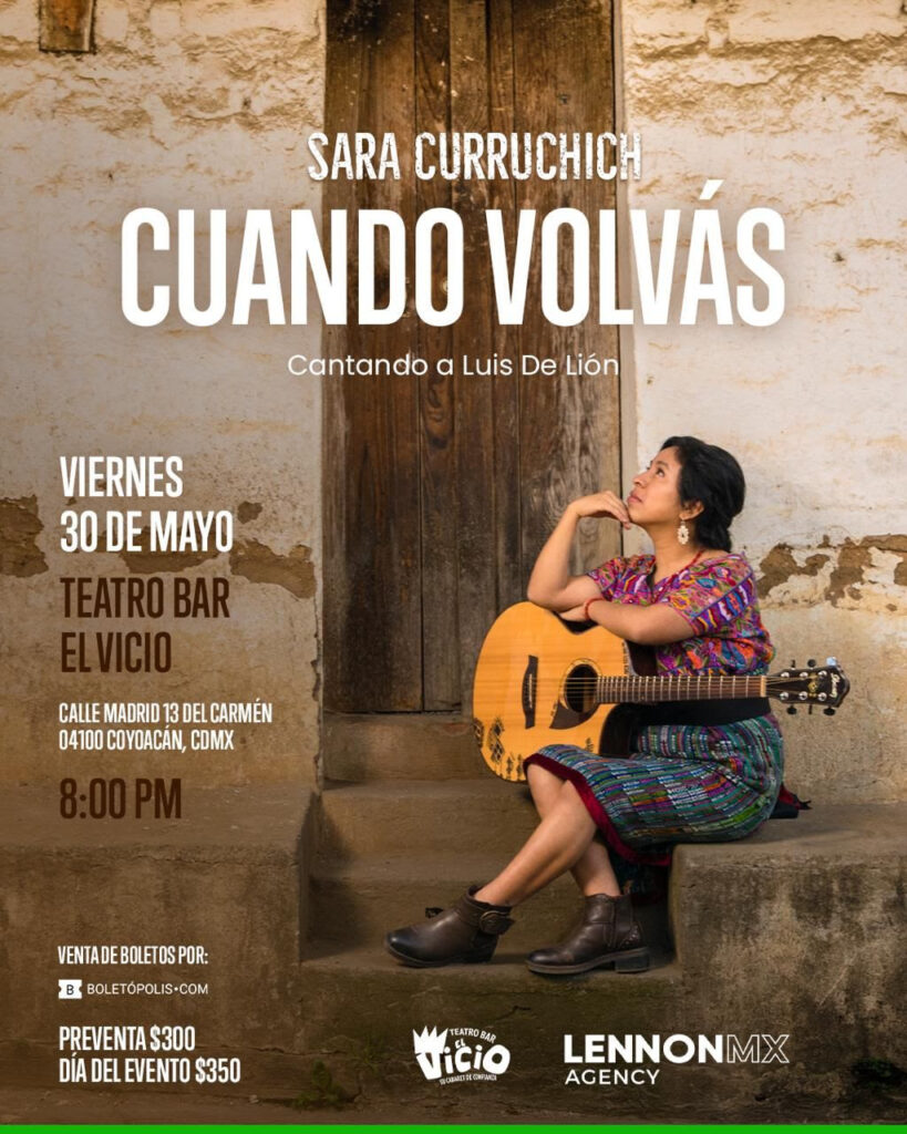 Periodistas Unidos. Ciudad de México. 11 de mayo de 2025.- Sara Curruchich: “Cuando Volvás”, una poderosa musicalización de poemas del gran poeta y escritor maya kaqchikel Luis de Lión, desaparecido en 1984 por el ejército guatemalteco. Este trabajo fue co-dirigido por Sara Curruchich y Leonardo Soqui (director musical de Lila Downs), y será presentado por primera vez en México el 30 de mayo en El Vicio (CDMX), tras una esperada gira en Guatemala. Noche de presentación del nuevo proyecto de la artista maya