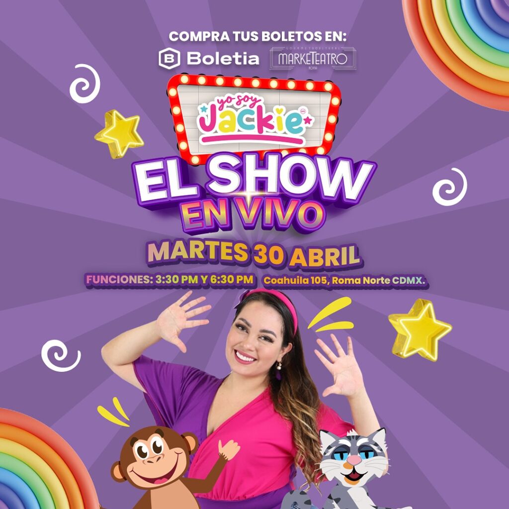 Las entradas para este evento especial están disponibles desde 290 pesos, con dos funciones a elegir: 3:30 pm o 6:30 pm. No pierdas la oportunidad de unirte a la fiesta de música, baile y diversión que Jackie y su equipo han preparado para celebrar el Día del Niño.