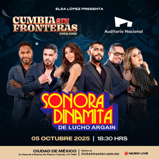 Este 5 de octubre, la cumbia no será solo música. Será identidad, será orgullo, será comunión. Y en el centro de todo, una agrupación que ha hecho historia. La Sonora Dinamita de Lucho Argain llega al corazón de la capital para recordarnos que la alegría no se olvida, que el ritmo no envejece y que, mientras haya ganas de bailar, la cumbia seguirá sin fronteras. Boletos a la venta en el Sistema Ticketmaster y en taquillas del inmueble.